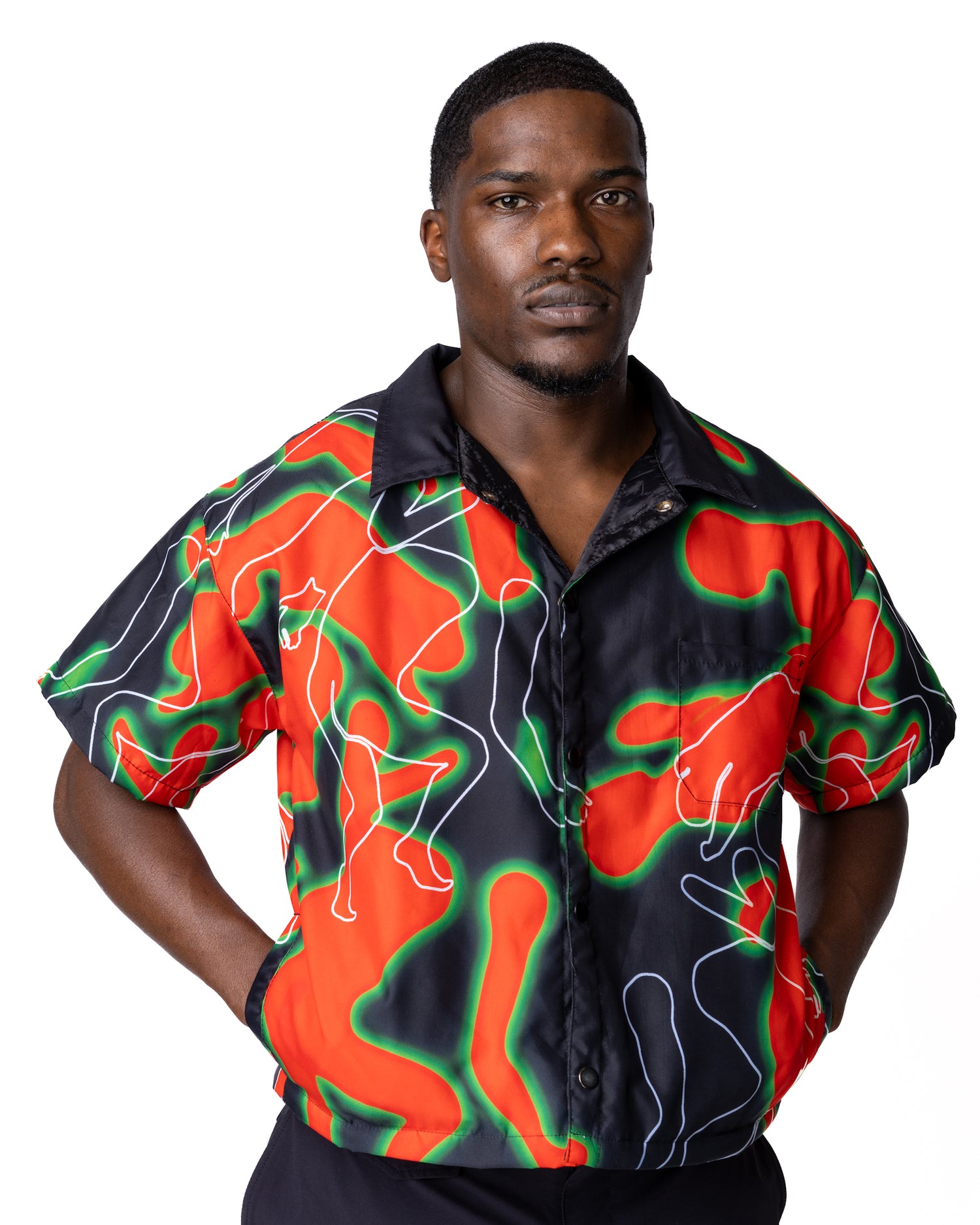 Igboya cropped button shirt - Orange and Green
