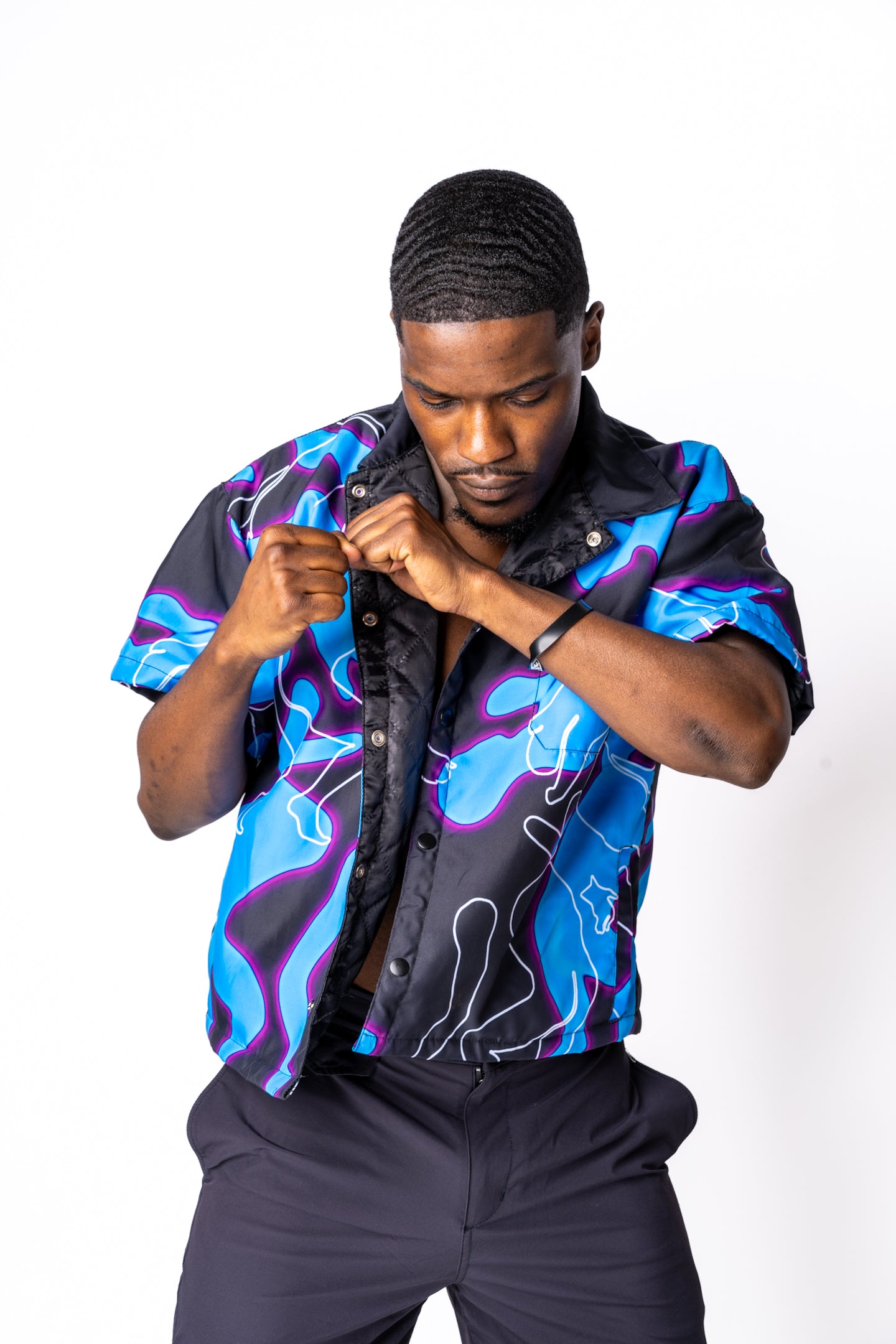 Igboya cropped button shirt - Blue & purple