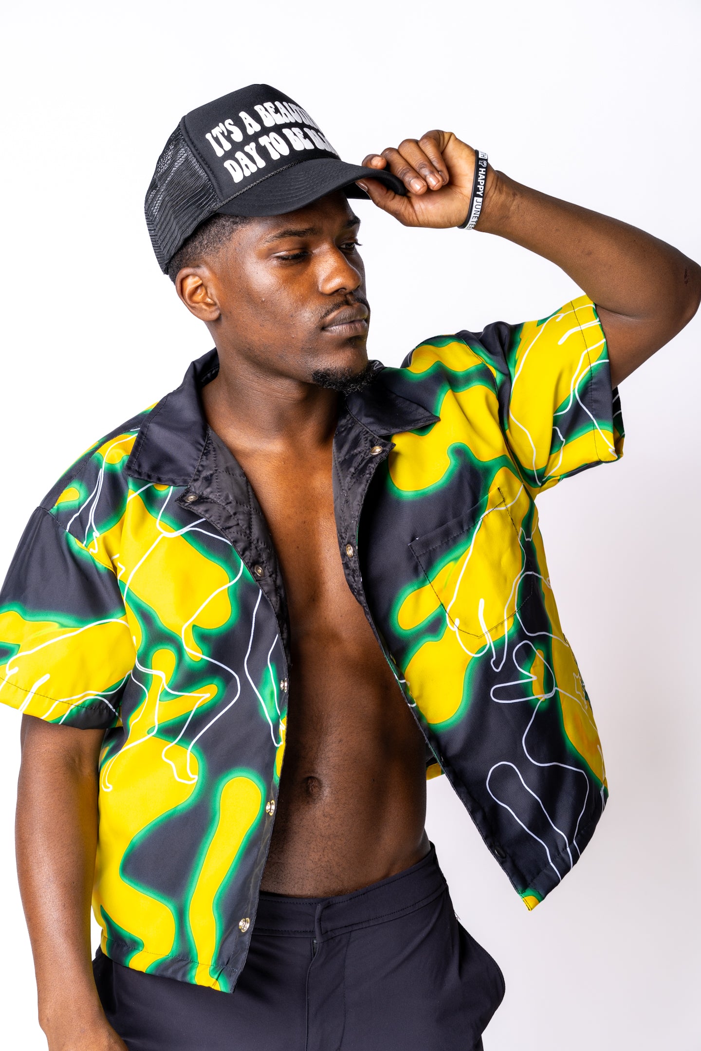 Igboya cropped button shirt - Yellow & Green